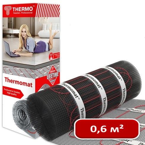 Thermomat – это нагревательный мат, состоящий из тонкого двужильного экранированного нагревательного кабеля диаметром всего 2,8 мм, закреплённого с определенным шагом на армирующей сетке из стекловолокна шириной 50 см. Внутренняя изоляция токоведущих жил выполнена из тефлона. Толщина мата позволяет укладывать его в слой плиточного клея без заливки стяжки, поэтому высота пола практически не увеличивается.