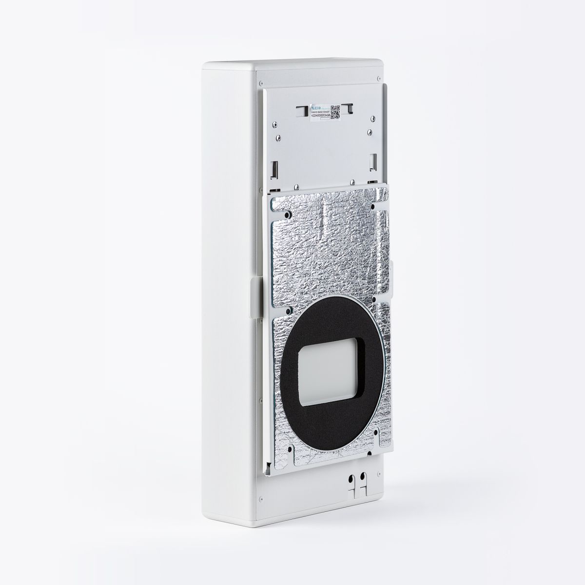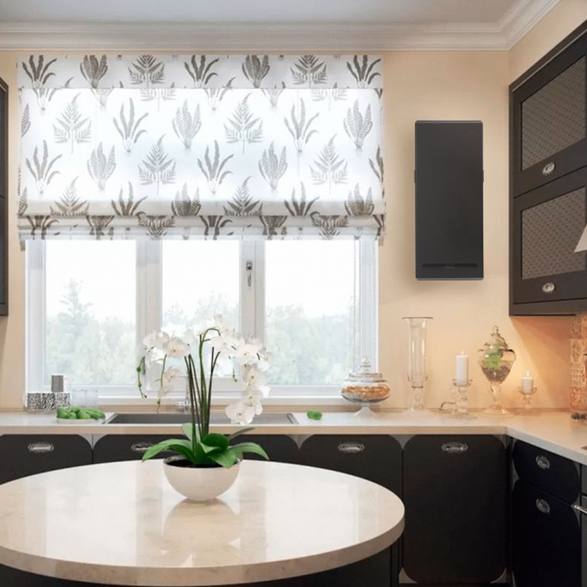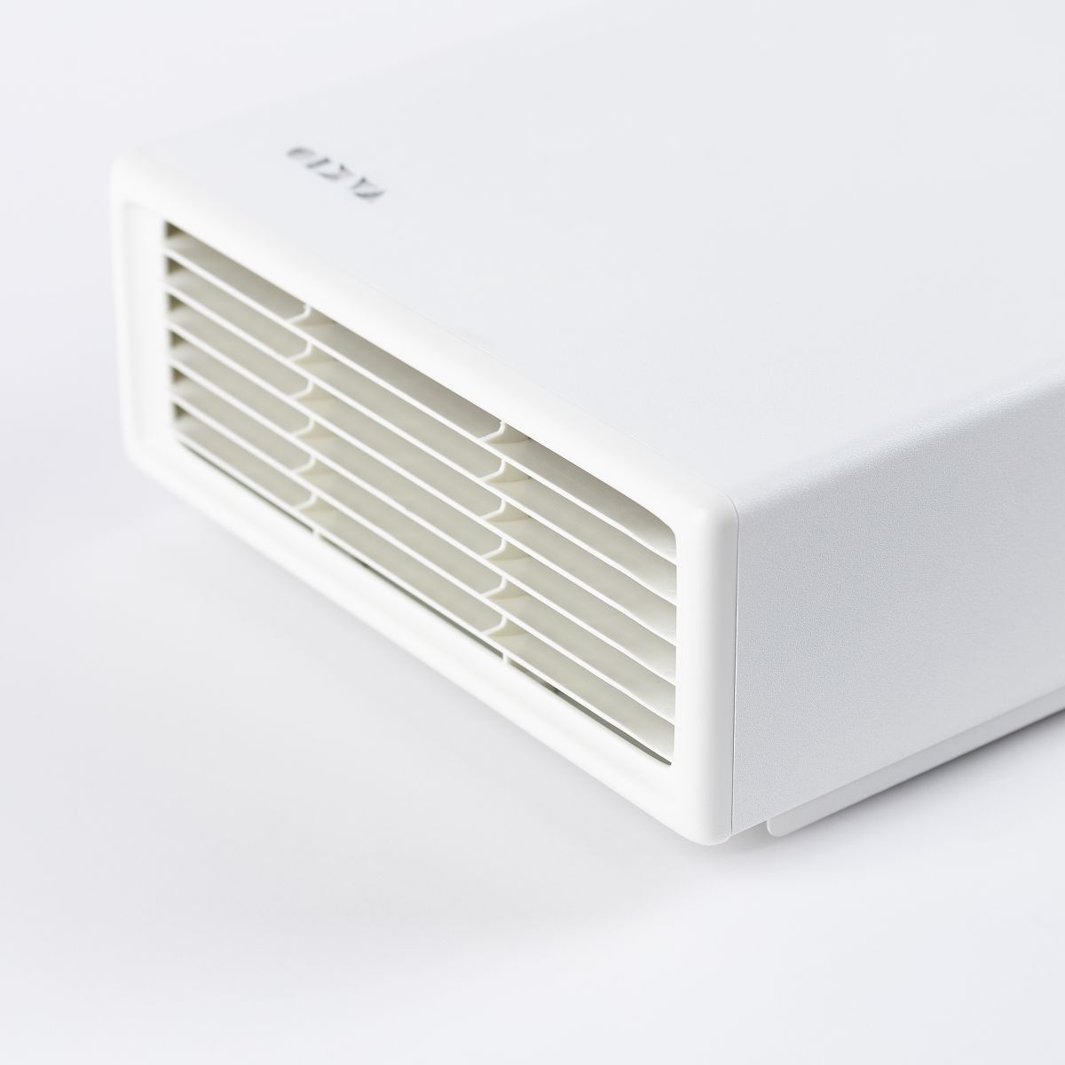 VAKIO WINDOW SMART монтируется в стены от 20 мм, также в стеклопакет при замене стекла, на сэндвич панель. Уровень шума 19 - 38 дБ - это самый тихий прибор, так как и теплообменник, и вентиляционный блок расположены с уличной стороны.
