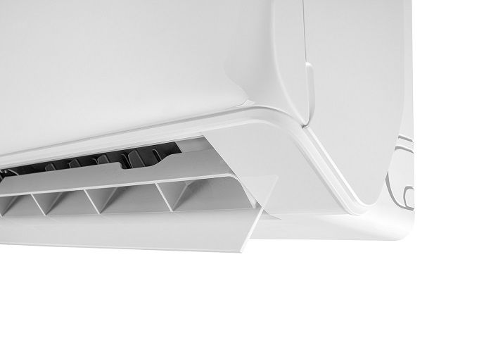Возможность регулировки широких горизонтальных и вертикальных жалюзи с помощью русифицированного пульта ДУ позволяет создавать комфортный угол обдува, предотвращающий продувание.