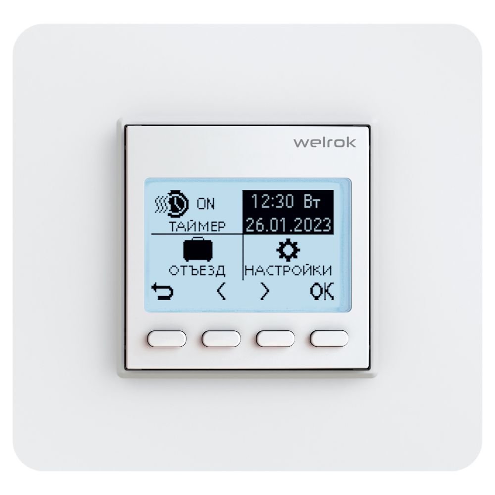 Термостат Welrok pro имеет 3 режима обогрева: «Воздух», «Пол» и «Воздух с ограничением по полу». Для чувствительных к перегреву паркетных или ламинатных полов подходит обогрев воздуха с ограничением по полу. Так комфортная температура воздуха будет поддерживаться не допуская перегрева пола.